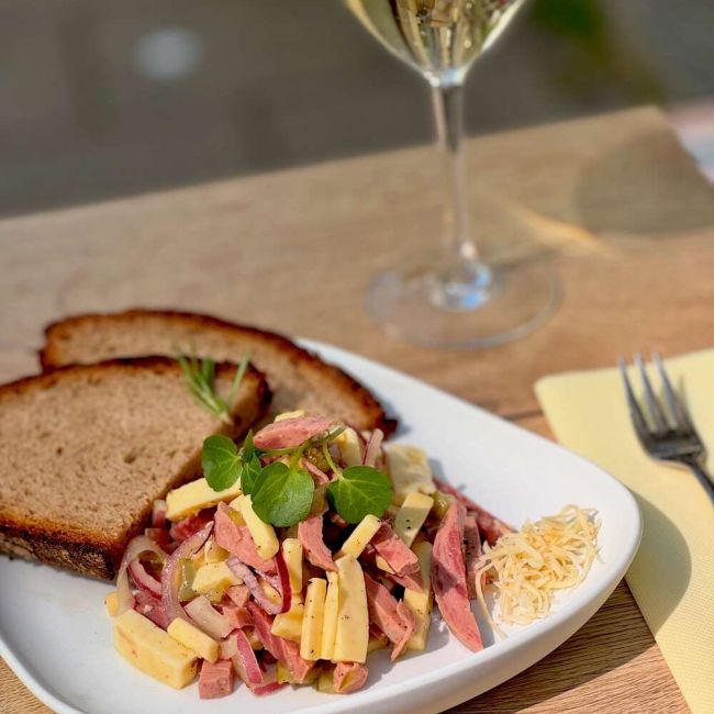 Neben der Feinkosttheke ist das Utz auch ein Bistro. Täglich wechselnde Menus (auch vegetarisch) oder unsere Klassiker wie Bison-Pastrami-Sandwich, Backhendlburger, Falafelbowl oder Kaiserschmarrn mit Zwetschgenröster. Dazu ein Glas Sauvignon Blanc oder Rosé von Domaine Kilger. Und wenn du lieber daheim genießt: Unsere Weine, Wurstwaren und Feinkostsalate gibt’s auch vakuumiert für zuhause.